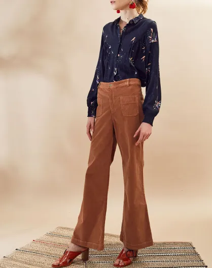 Pantaloni Neofolk in velluto a coste sottili color cammello