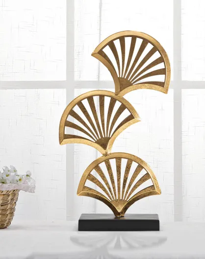 Scultura a tre foglie oro/nero - 23,5x10x44 cm