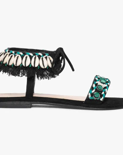 Sandali Neri/Palm Tree Jesh Shell in pelle di velluto