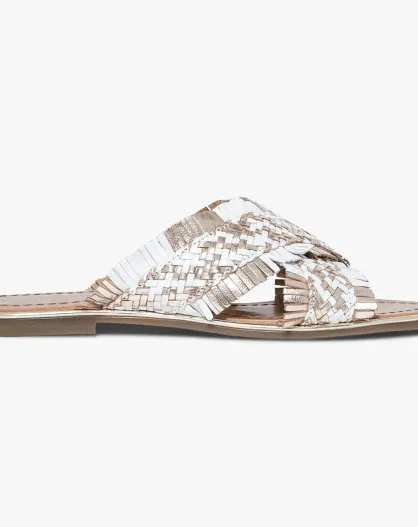 Sabot in pelle intrecciata Zora color crema/oro