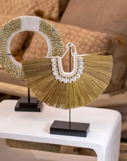 Collana Mendong e conchiglie su base in metallo Kim beige/nero - H.33 cm