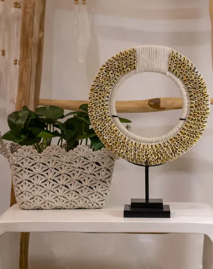 Collana a conchiglia su base metallica linh bianco/beige/nero - H.37 cm