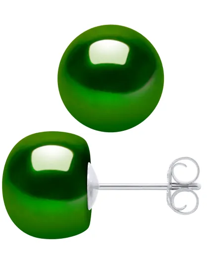 Orecchini in argento verde malachite e perle coltivate d'acqua dolce Ø 9-10 mm