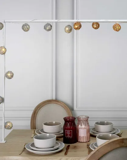 Ghirlanda LED marrone con sfere in rattan - 156 cm