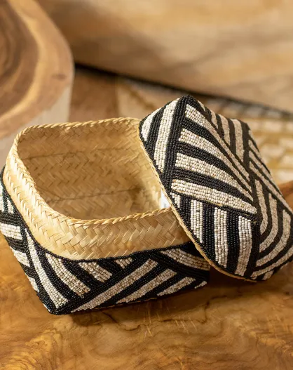 Scatola in bambù decorata con perline bao multicolori - 20x20 cm