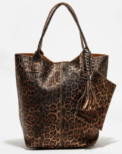 Borsa Yana in pelle con motivo leopardato - 39x25x35 cm