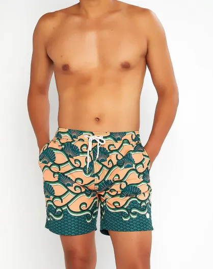Pantaloncini da bagno verde tramonto/giallo/rosso