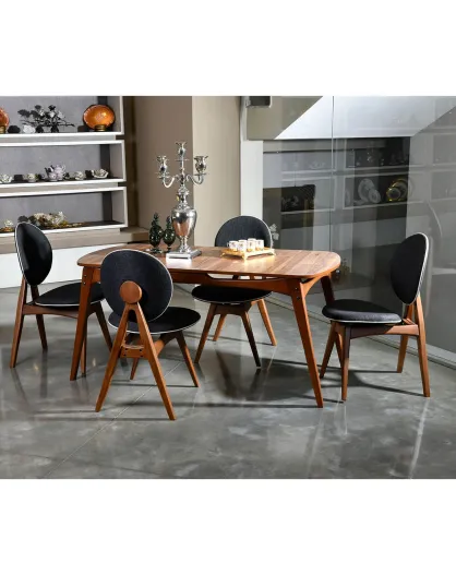 Tavolo + 4 sedie Touch in legno di noce/antracite