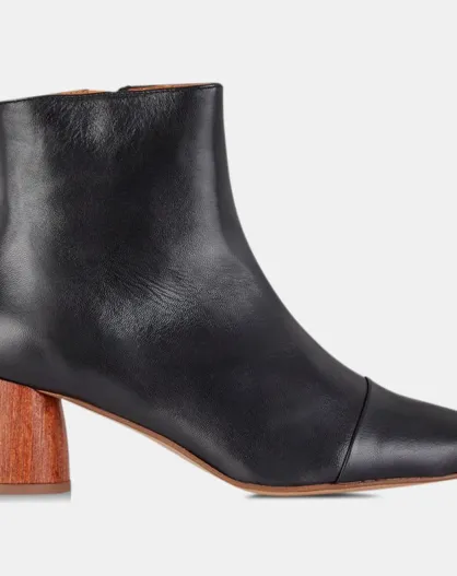 Stivali in pelle con tacco in legno nero - tacco 5 cm