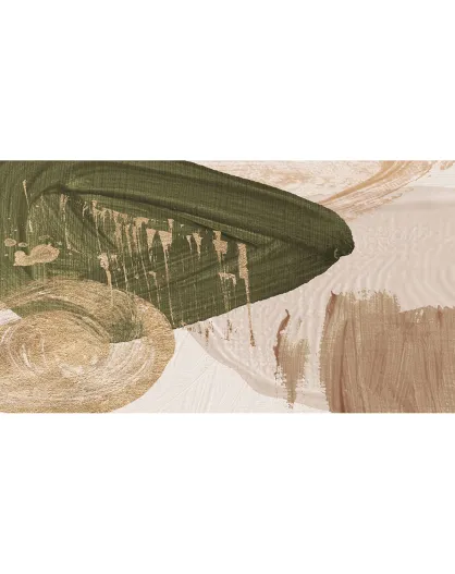 Tappeto in vinile Oleo 3 rosa/oro/kaki - 66x150 cm