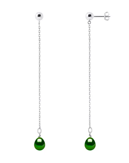 Orecchini in argento verde malachite e perle coltivate d'acqua dolce