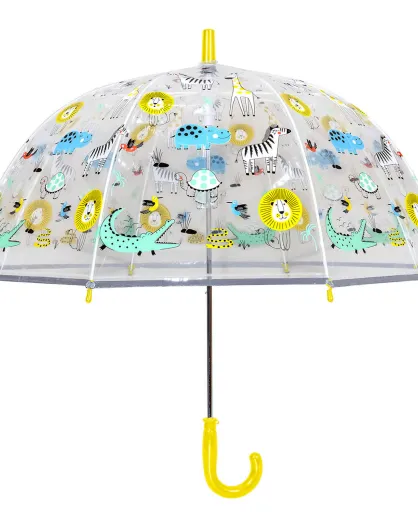 Ombrello a campana trasparente per bambini - Sistema di apertura automatico - Gatti - Bordo riflettente trasparente per la notte