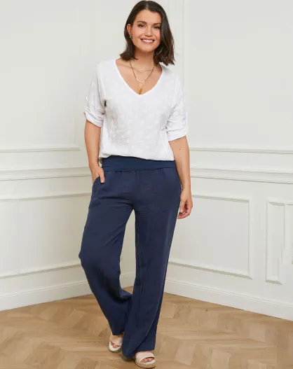 Pantaloni Eliana navy 100% lino