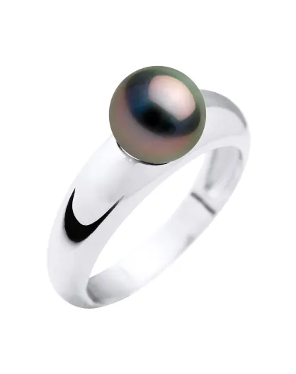 Bracciale in oro bianco e anello in perla coltivata di Tahiti rotonda nera