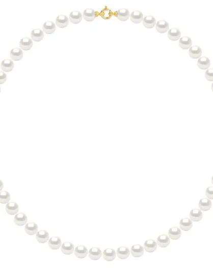 Collana in oro giallo con perle d'acqua dolce rotonde bianche naturali
