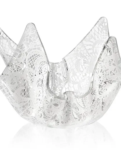 Vaso in pizzo Drappeggi trasparente/bianco - 45x45x29 cm