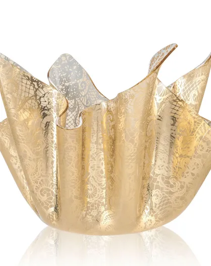 Vaso in pizzo Drappeggi dorato - 45x45x29 cm