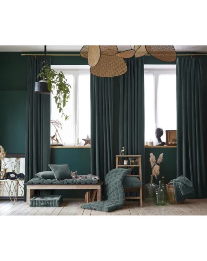 Cuscino rimovibile con nappine in garza di cotone Gaïa antracite