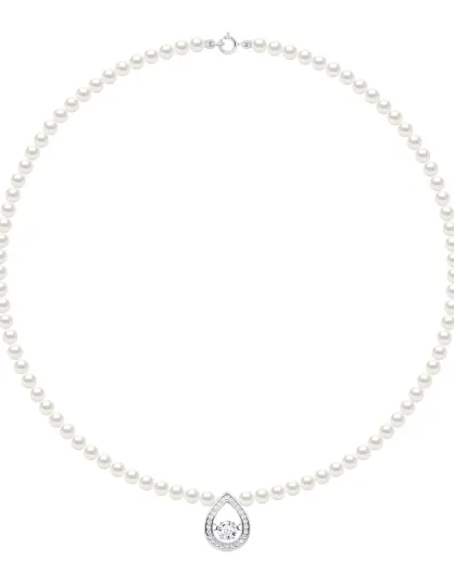 Collana in argento rodiato e perle coltivate d'acqua dolce semicircolari bianche naturali