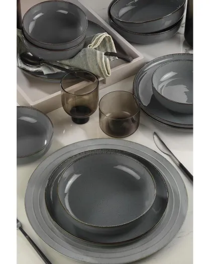Servizio da tavola in porcellana grigia - 12 pezzi