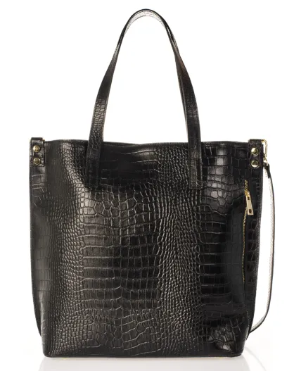 Borsa a tracolla nera Cate in pelle di coccodrillo - 43x14x36 cm