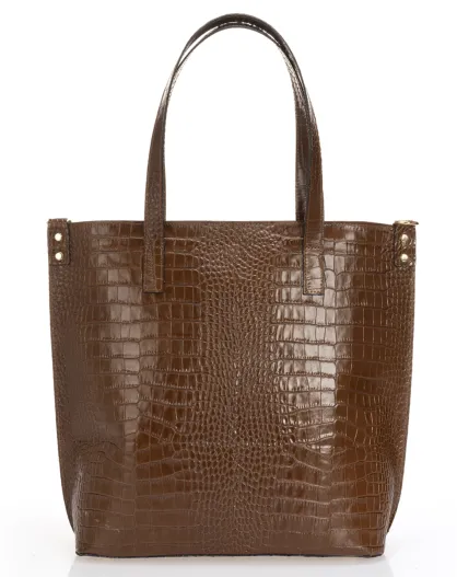 Borsa a tracolla in pelle Cate Croco marrone - 43x14x36 cm