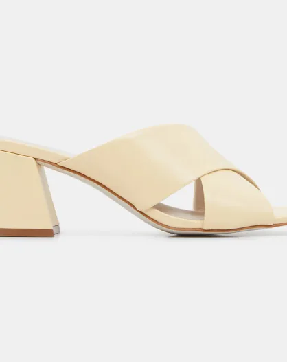 Sabot a croce in pelle ecrù - tacco 6 cm