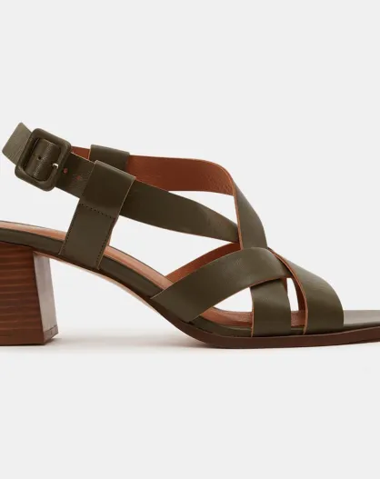 Sandali in pelle kaki con cinturini incrociati - tacco 5,5 cm