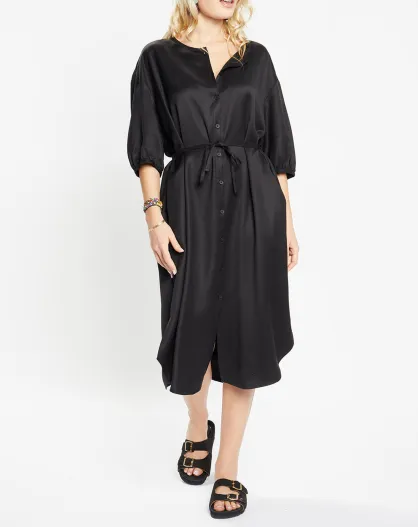 Abito Amandine di media lunghezza con cintura nera da annodare