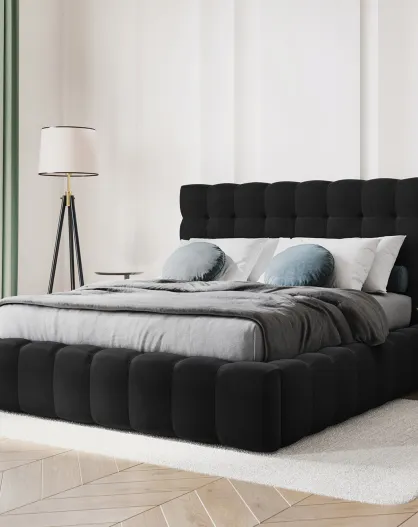 Letto Bali in velluto nero con contenitore - 140x200 cm
