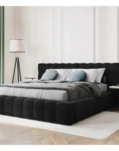 Letto Bali in velluto nero con contenitore - 140x200 cm