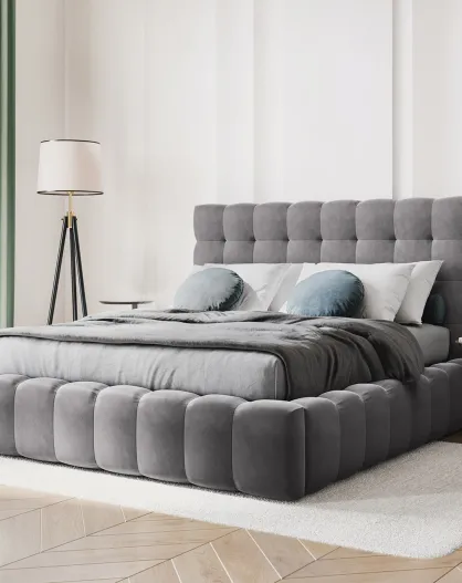 Letto Bali Velvet grigio con contenitore - 200x200 cm