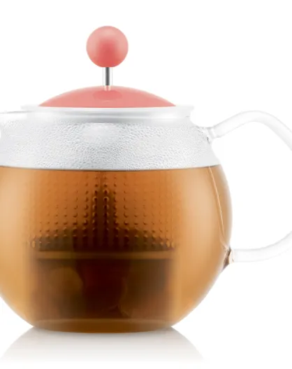 Teiera a pistone rosa Assam con coperchio e filtro in plastica - 0,5L