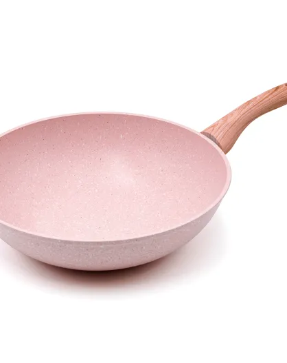 Wok a induzione in alluminio forgiato rosa Stonerose - D.28 cm