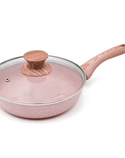 Padella a induzione in alluminio forgiato rosa Stonerose con coperchio - D.20 cm