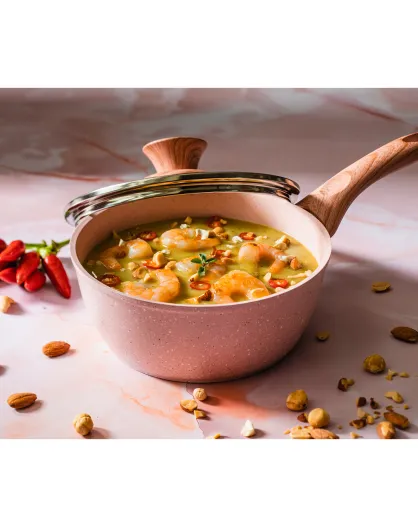 Casseruola a induzione in alluminio forgiato rosa Stonerose con coperchio - D.18 cm
