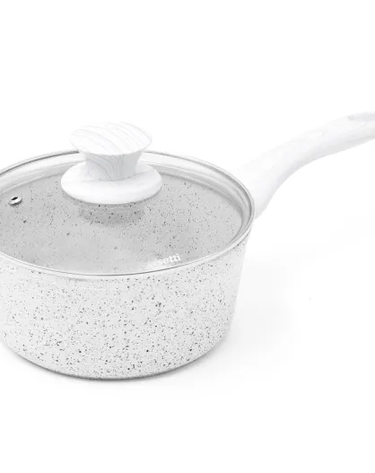 Casseruola a induzione in alluminio forgiato Stone White con coperchio bianco - D.18 cm