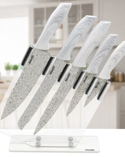 5 coltelli da cucina bianchi in pietra bianca con supporto