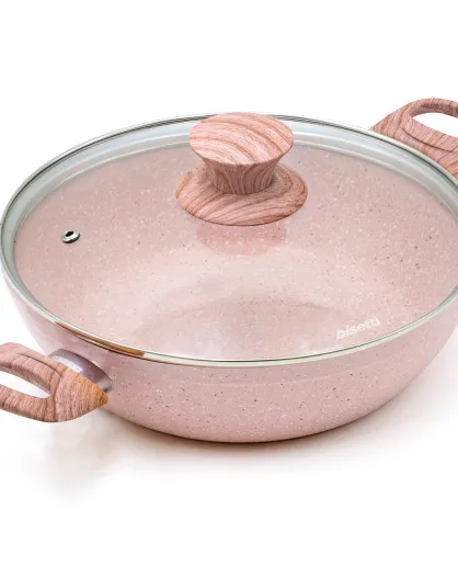 Padella in alluminio forgiato rosa Stonerose con coperchio a induzione - D.24 cm