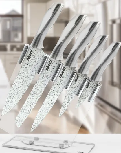5 coltelli da cucina bianchi in pietra bianca con supporto