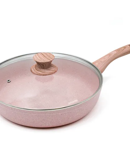 Padella a induzione in alluminio forgiato rosa Stonerose con coperchio - D.28 cm