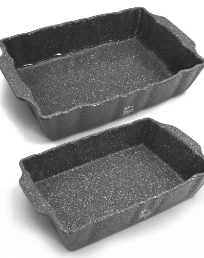 2 teglie da forno in gres porcellanato Gourmet grigio - 34x22x7/30,5x18,5x6 cm