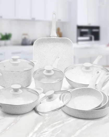 Set di pentole a induzione in alluminio forgiato Stone White - 13 pezzi