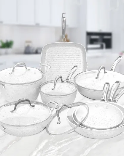 Set di pentole a induzione in alluminio forgiato Stone White - 13 pezzi