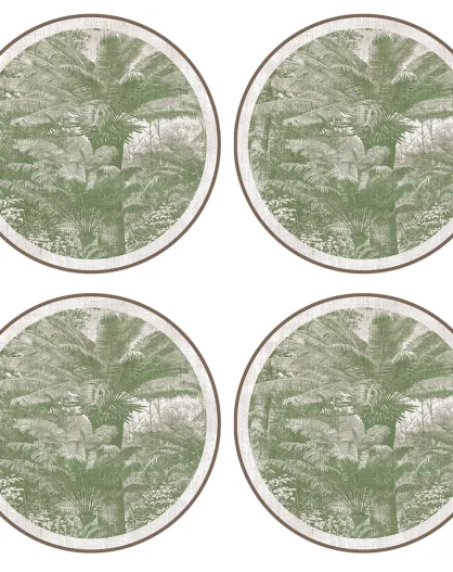 4 tovagliette rotonde a forma di palma verde - D.40 cm