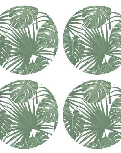 4 tovagliette rotonde a forma di palma verde - D.40 cm
