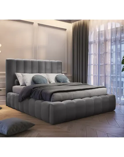 Cassettiera in velluto con testiera grigia Gina - 160x200 cm