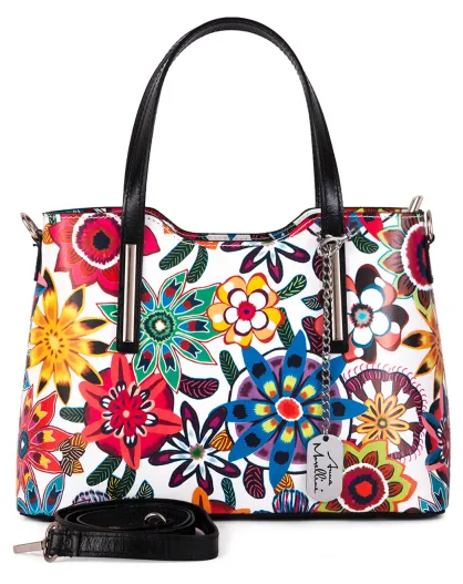 Borsa a mano in pelle di cicile bianca/multicolore - 28x22x8 cm