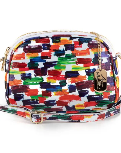 Borsa a tracolla Anna Signature 19 in pelle bianca/multicolore - 23x17x7 cm