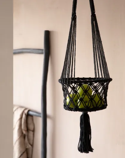 Portapiante in macramè nero - D.20xL.100 cm